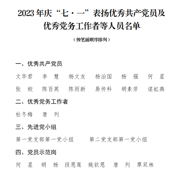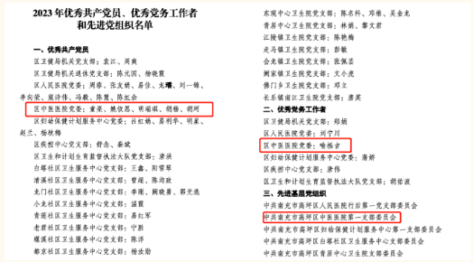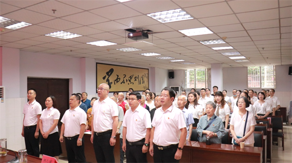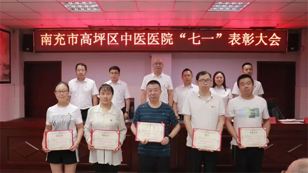为庆祝中国共产党成立102周年,继承和弘扬党的光辉传统和优良作风,提高党组织的凝聚力、号召力和战斗力,增强广大党员的光荣感、责任感和使命感,南充市高坪区中医医院党委开展系列活动,庆祝中国共产党成立102周年。 主题党日活动 “七一”前夕,医院第一党支部、第二党支部分别走进邓小平故里、川陕革命根据地博物馆、川陕苏区将帅碑林纪念馆开展主题党日活动。 通过重温入党誓词、参观纪念馆、党章学习研讨等系列活动,接受精神洗礼,传承红色基因,增强全体党员的光荣感、使命感和责任感。 大家纷纷表示,要珍惜当下幸福生活的来之不易,沿着革命先辈的足迹接续奋斗,牢记初心使命,坚定不移听党话跟党走。 “七一”表彰大会 7月1日上午,南充市高坪区中医医院在学术厅召开“七·一”表彰大会。医院党委领导、各支部书记、支部委员及党员代表参加会议。 党委副书记、院长江月强 主持会议 会议在齐唱《中华人民共和国国歌》中拉开序幕。 党委副书记 柯志斌 总结党建工作 党委委员、纪委书记 杨旻 宣读表彰决定 《关于表彰2023年度高坪区卫健系统“两优一先”的决定》 《中共南充市高坪区中医医院委员会关于2023年“七一”表彰的决定》 颁奖仪式 医院党委领导为优秀共产党员、优秀党务工作者、先进党小组、共产党员示范岗颁发荣誉证书。 慰问老党员 党委领导慰问医院75岁以上老党员,并代表医院向他们致以崇高敬意和亲切问候。 重温入党誓词 党委书记田卫东带领与会党员重温入党誓词,鞭策党员同志以先进为榜样,向优秀学习,不忘初心和使命。 党委书记 田卫东 讲话 他代表医院党委向全体共产党员表示节日的问候,向受到表彰的集体和个人表示热烈的祝贺。并以《铭记党的光辉历程,弘扬伟大建党精神》为主题,为与会党员们讲授了一堂主题鲜明的专题党课。 他在讲话中指出,全院共产党员要深入学习贯彻党的二十大精神。一是坚持以“学”为先。在读原著、学原文、悟原理上下功夫,在全面系统上下功夫,在融会贯通上下功夫,在联系实际上下功夫,以“我要学”的责任感、“学到底”的精气神、“带动学”的好风气,厚植全面学习党的二十大精神沃土。二是坚持以“干”为要。党员干部要率先垂范、模范带头,突出政治引领,围绕医院中心工作,锚定既定目标任务,以“敢为”的精神涵养魄力,以“敢闯”的精神涵养毅力,以“敢干”的精神涵养定力,以“敢拼”的精神涵养能力,凝心聚力,砥砺前行,以饱满的精神建功新时代。三是坚持以“实”为本。认真领会党的二十大提出的新思想新论断、作出的新部署新要求,把其精神内化于心、外化于行,持续推动、走深走实,切实用理论武装头脑、指导实践、解决问题、推动工作,为医院高质量发展注入新动能。 表彰大会在雄壮的《没有共产党就没有新中国》歌声中落下帷幕。