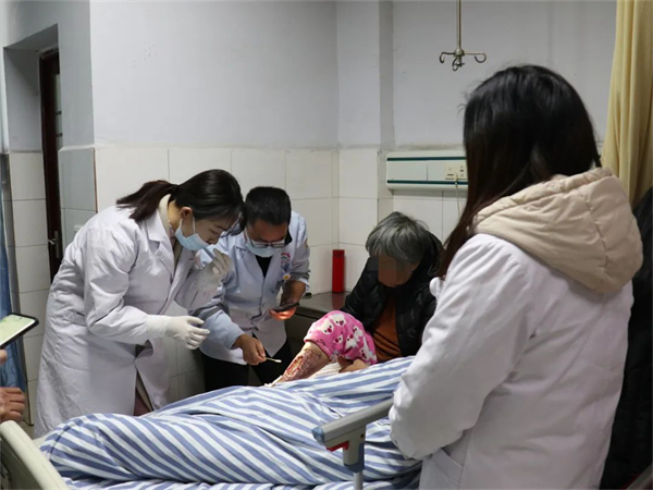 为进一步提升医院烧伤创疡团队业务水平,加强临床诊疗规范。2024年1月15日,成都市创疡再生医疗技术创面修复专科联盟王乡宁教授莅临我院开展临床应用指导。 王乡宁教授在院纪委书记杨旻的陪同下,来到外科开展教学查房,详细询问患者病情,对患者病情进行评估,指导患者的治疗方案。王教授还现场指导、示范了创面的处理,强调创疡再生医疗技术创面处理要点和规范操作的重要性。 王乡宁教授莅临我院进行创疡再生医疗技术临床应用指导,不仅为我院医护人员拓宽了工作思路,也使我院医务人员更加深入地掌握了创疡再生医疗技术,对我院外科烧伤学科建设发展起到了积极引导的作用。今后,我院将积极开展创疡再生医疗技术的规范应用,为烧伤创疡患者提供更优质服务。 |