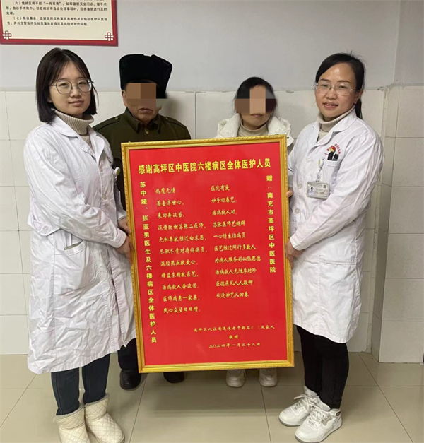 近日,患者石先生及家人将一块感谢牌送至我院六楼病区医生苏中娅、张亚男手中,表达了对两位医生及病区全体医护人员精湛医术和崇高医德的感激之情。 感谢牌上写道:“病魔无情,医院有爱;菩壶济世心,妙手回春艺;来回奔波苦,治病救人功......”这份出自患者之心、充满情感的礼物,让医护人员深受感动。 这面沉甸甸的感谢牌,不仅是对六楼病区全体医护人员医术的认可和肯定,更是传递了医患之间真挚的情感和和谐氛围。它亦是一种激励,鼓舞广大医护人员秉持医者仁心,用卓越的救治成果回馈患者的信任和托付。接下来,六楼病区将继续锐意进取,以精湛的医疗技术和优质的护理服务,为广大患者带来福祉。 |